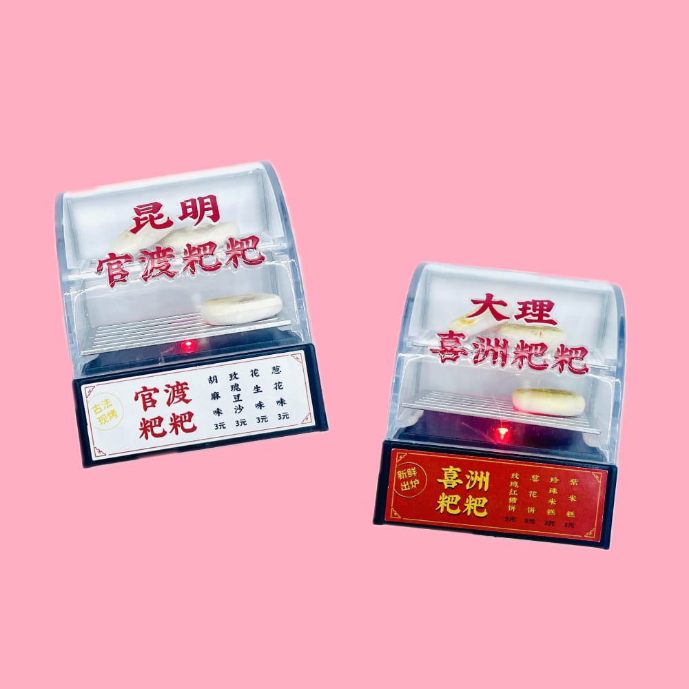 粑粑と言われる焼きパイのような焼きパンのような美味しいご当地グルメがホットスナックのケースに入れられて売られている様子を再現した超ニッチなマグネット!