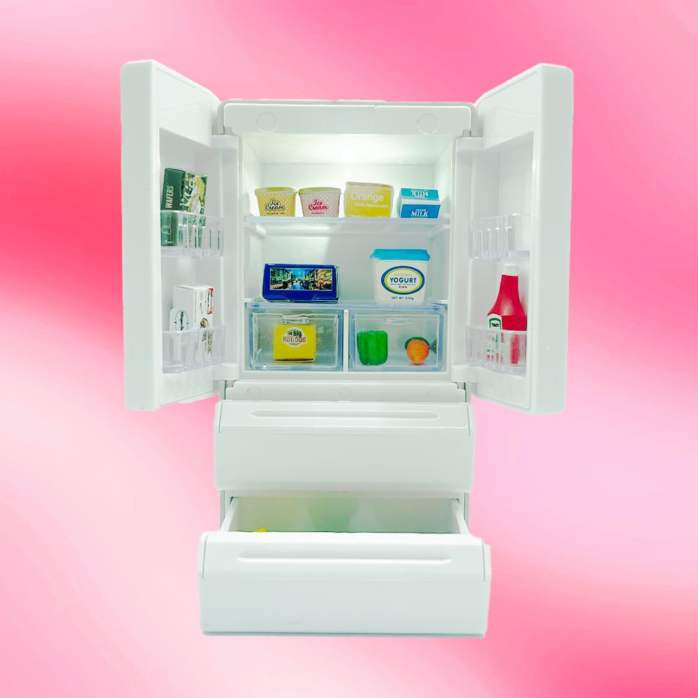 冷蔵庫のドアは全て開くので、ミニチュアをお好きな位置に配置するも良し、アクセサリーなどのちょっとした小物を入れるも良し!