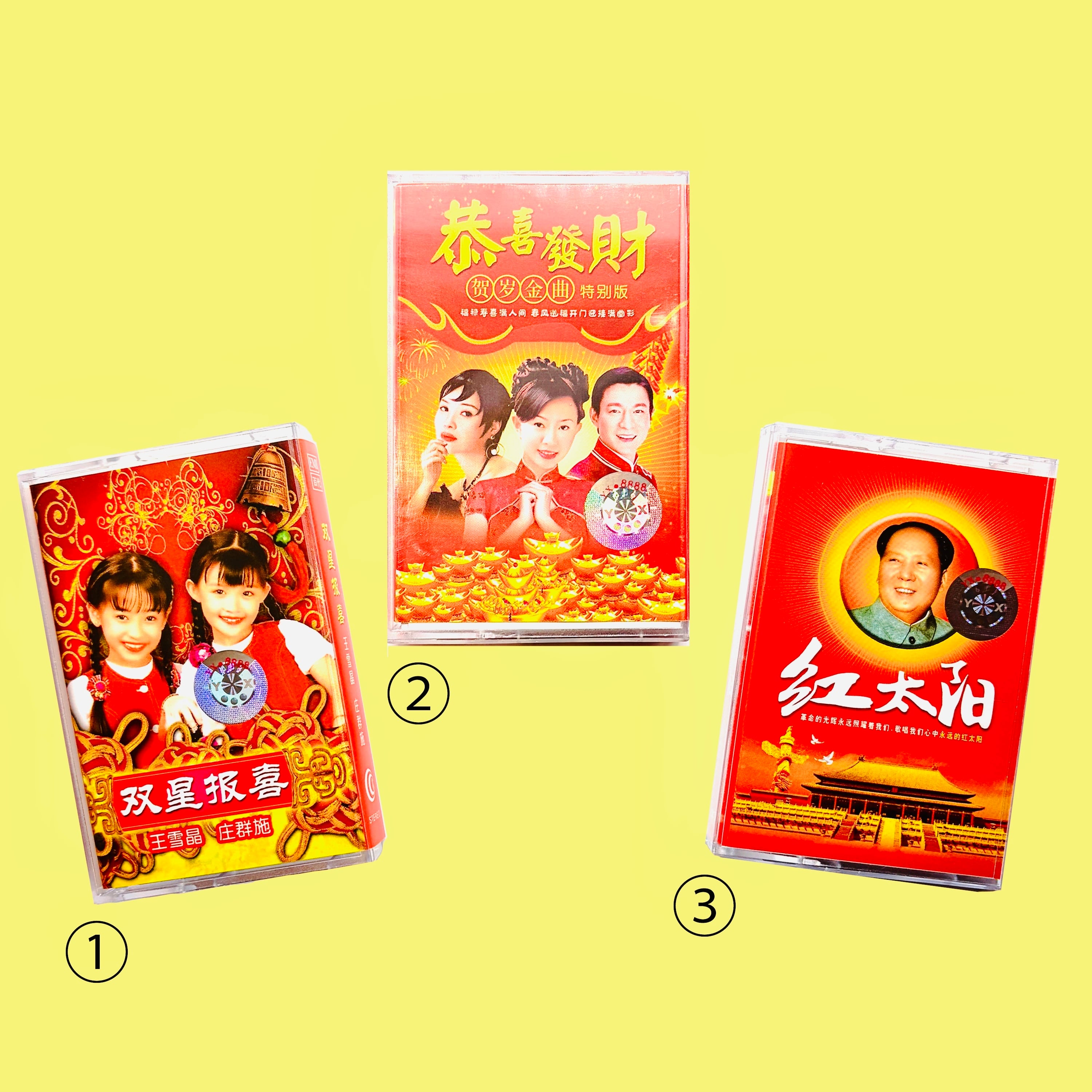 新年をお祝いするおめでたい楽曲満載のものや、共産党のプロパガンダソングまで、現代の中華文化とは切っても切れない音源が収録されています。