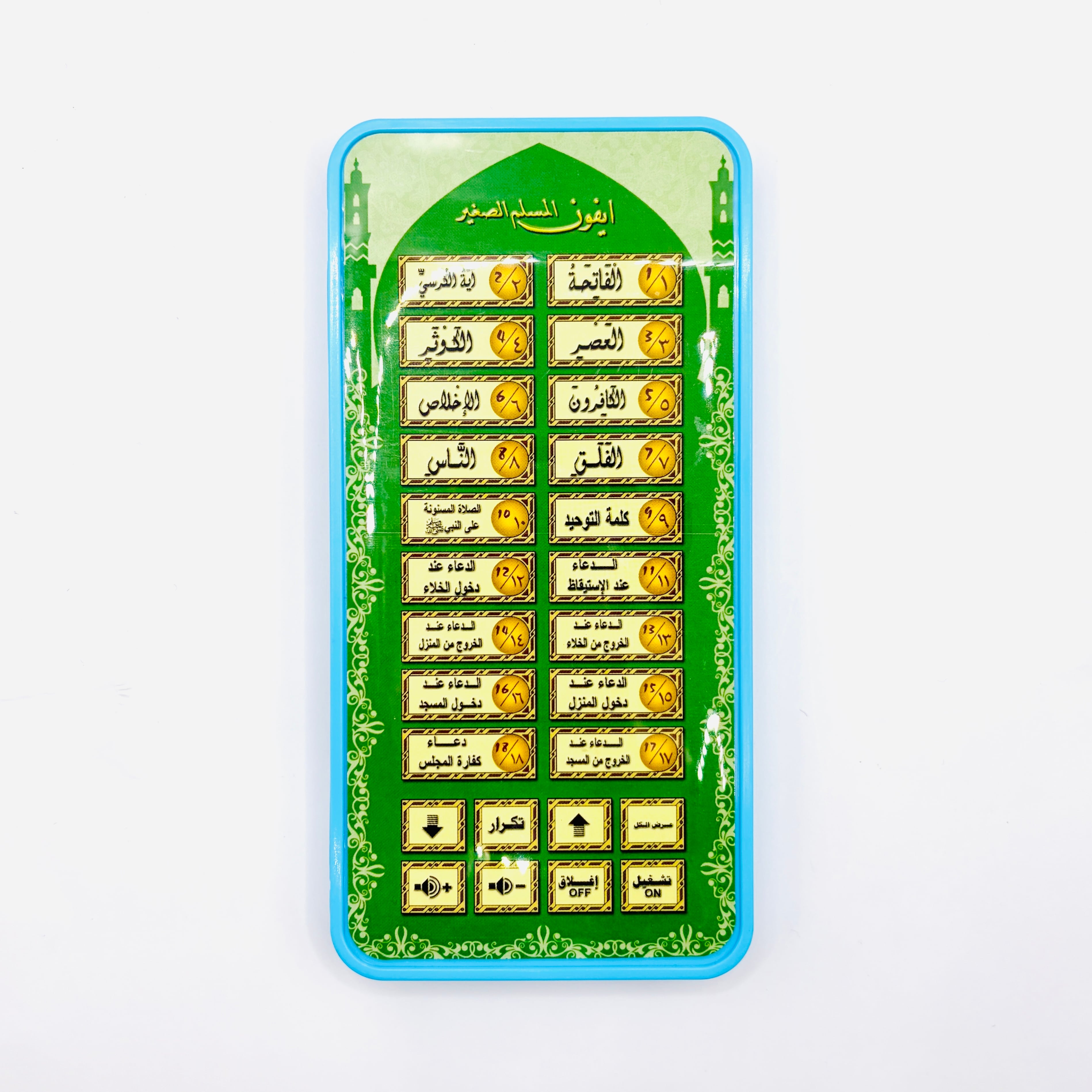スマホのようなボディにたくさんついたボタンを押せば、イスラム教の音声が流れます。