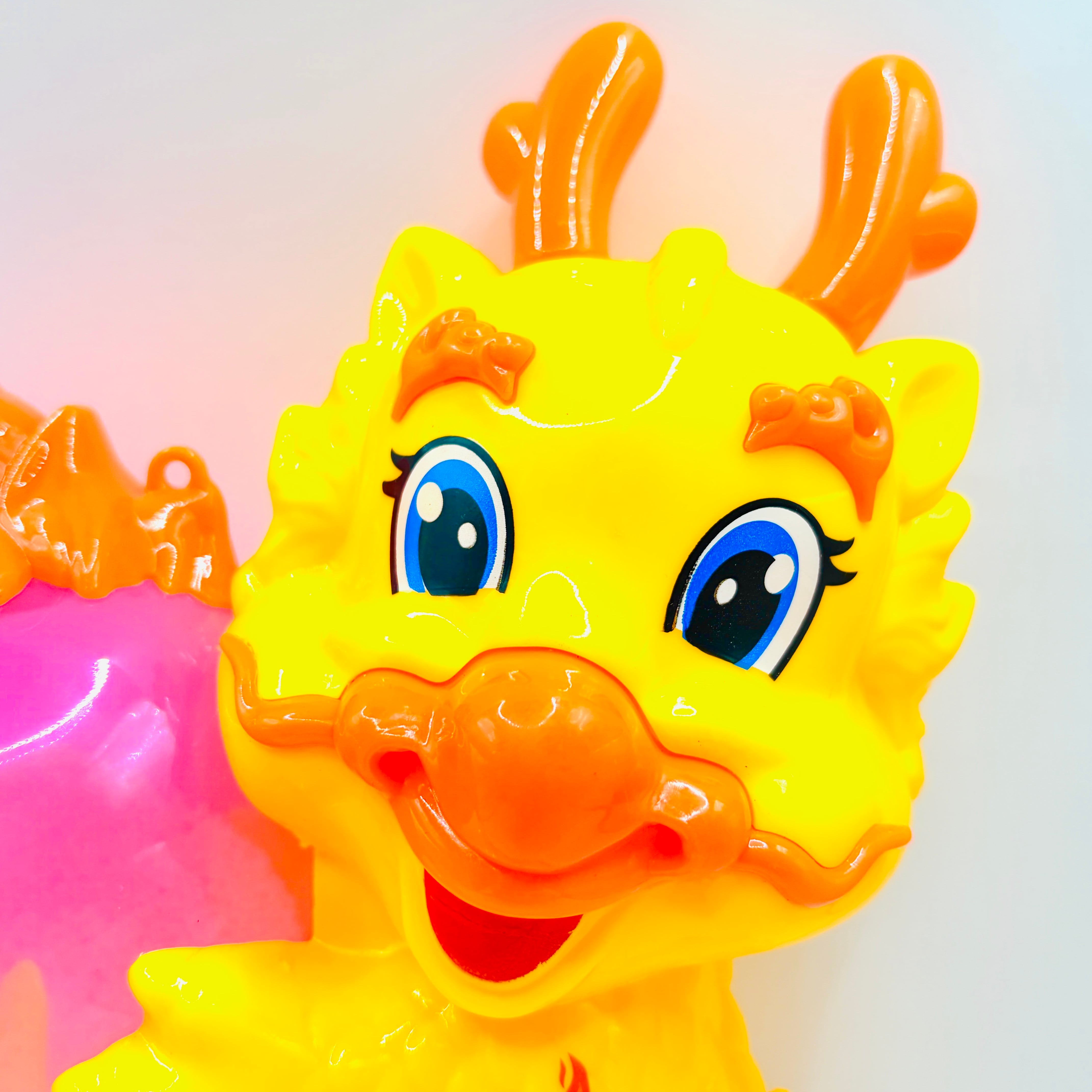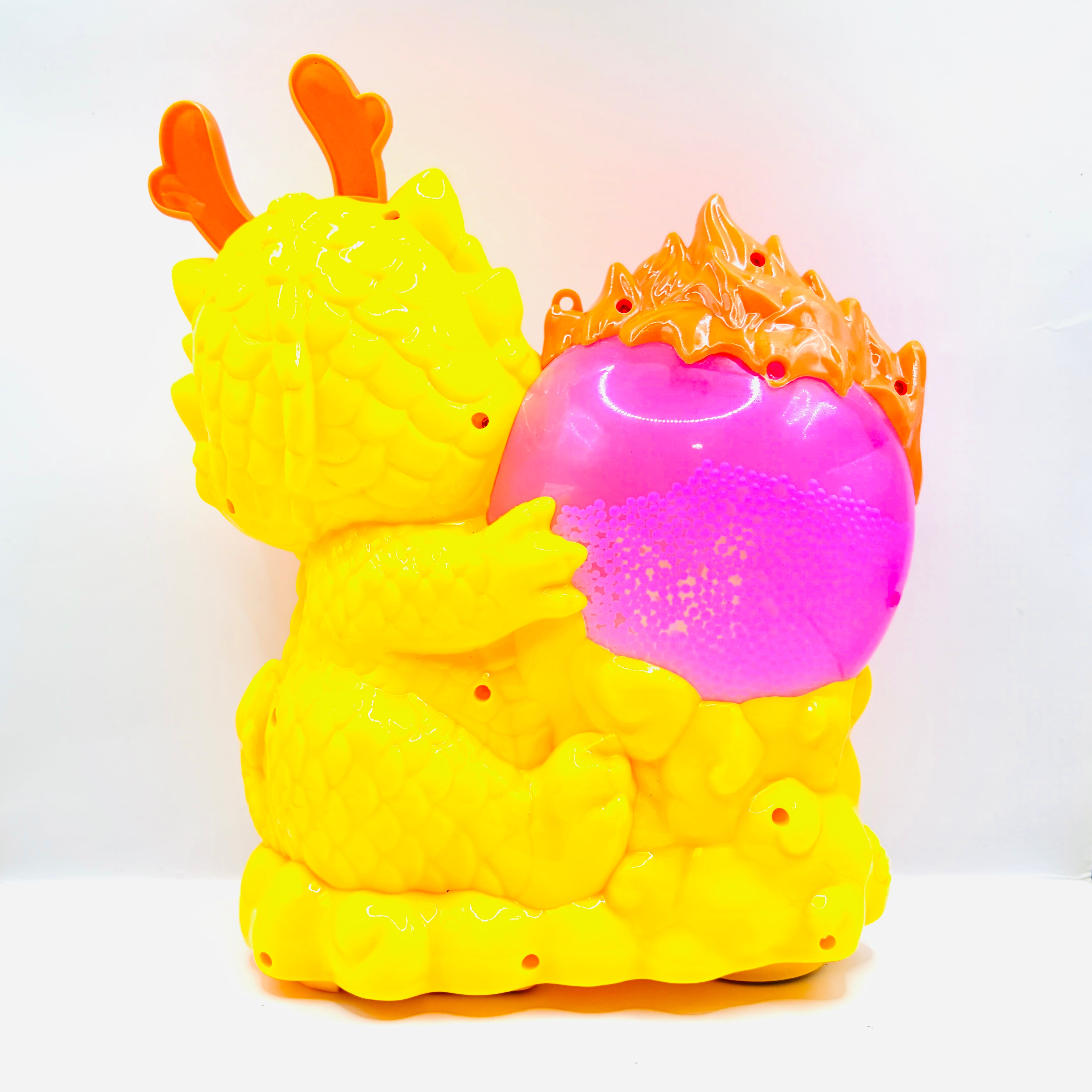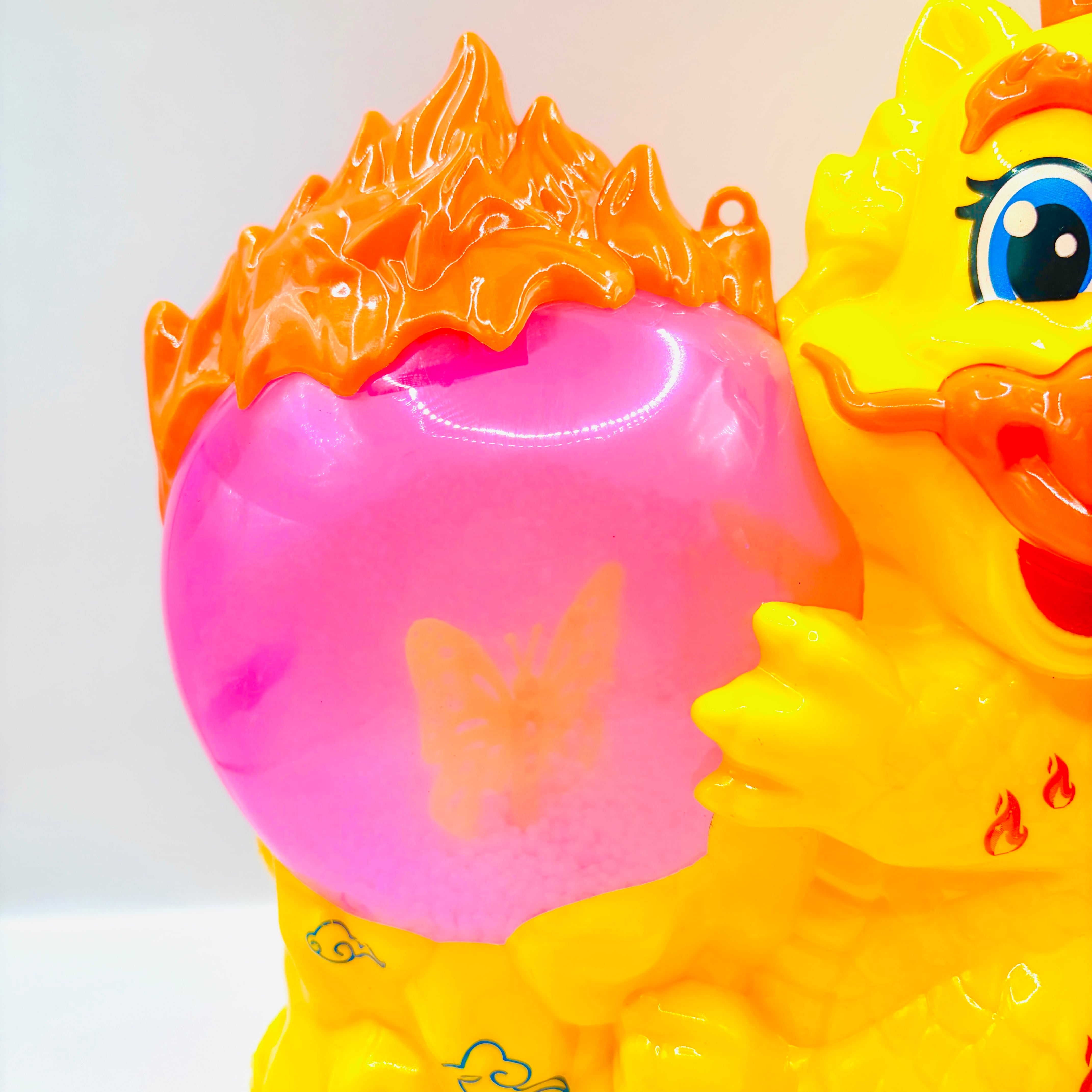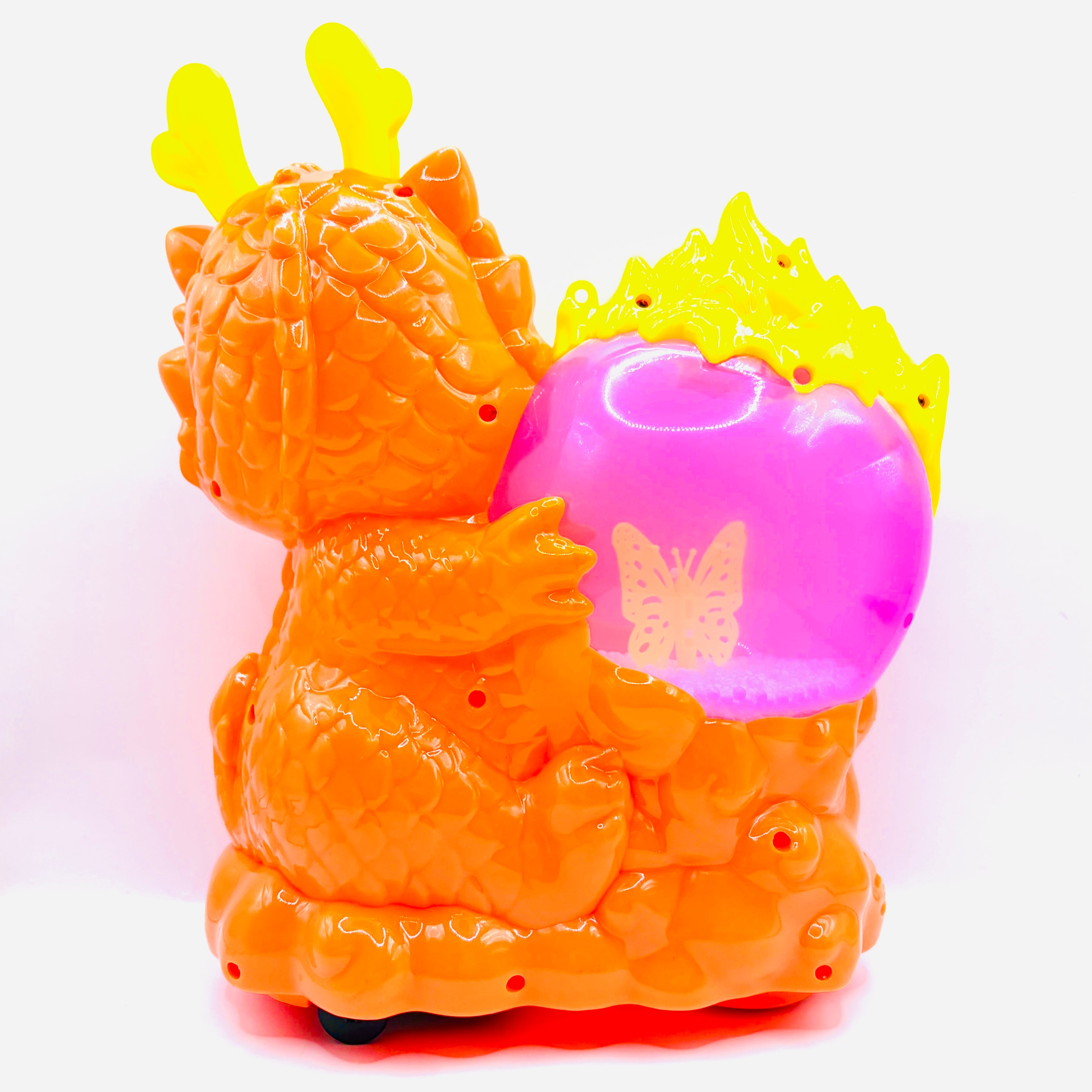 スノードームのような宝珠を抱えたつぶらな瞳のドラゴンが可愛らしいおもちゃです。