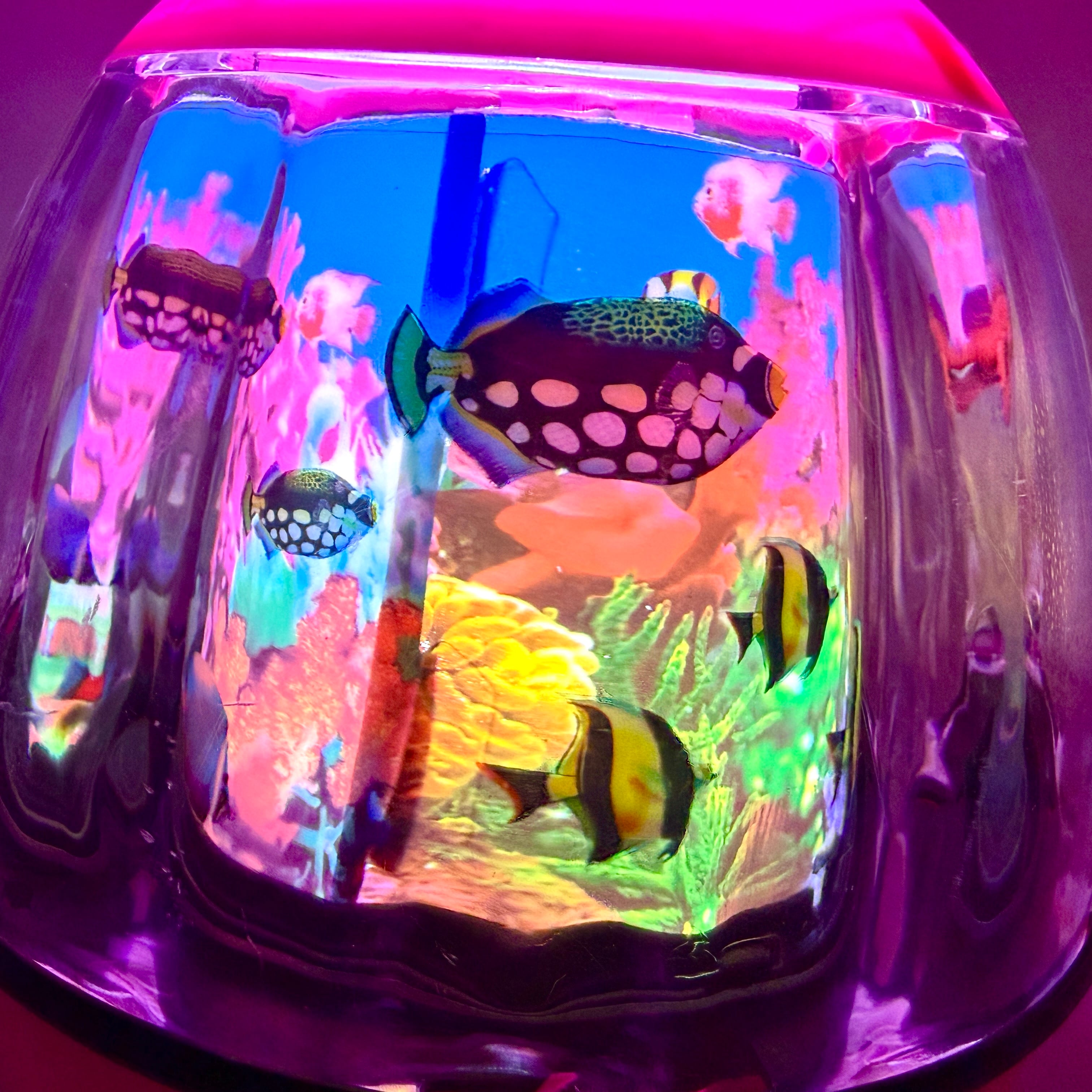 丸いアタッチメントをはめれば動きを止められるので、机などに置いてもスイッチを入れてお魚たちのディスコタイムを鑑賞できます!
