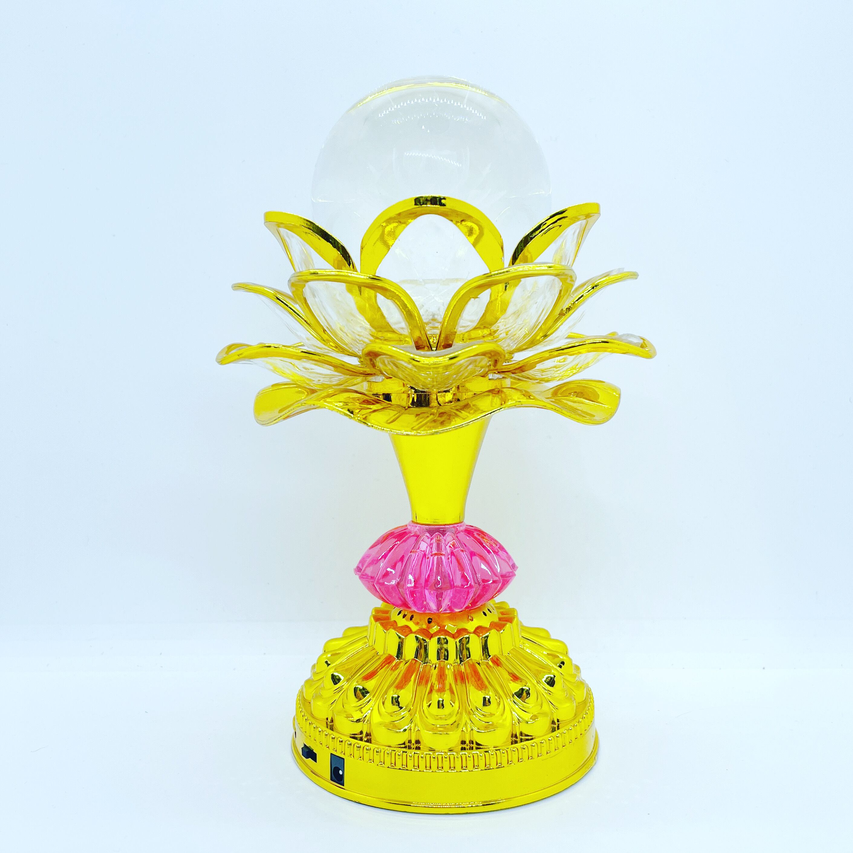 蓮の花と台座に付いたクリスタル部分が別々に色を変えてムーディーに光ります。