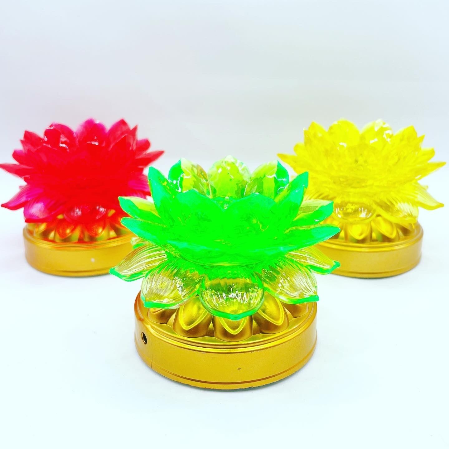 スケルトンのツヤツヤしたハスの花がムーディーに光るライトです。
