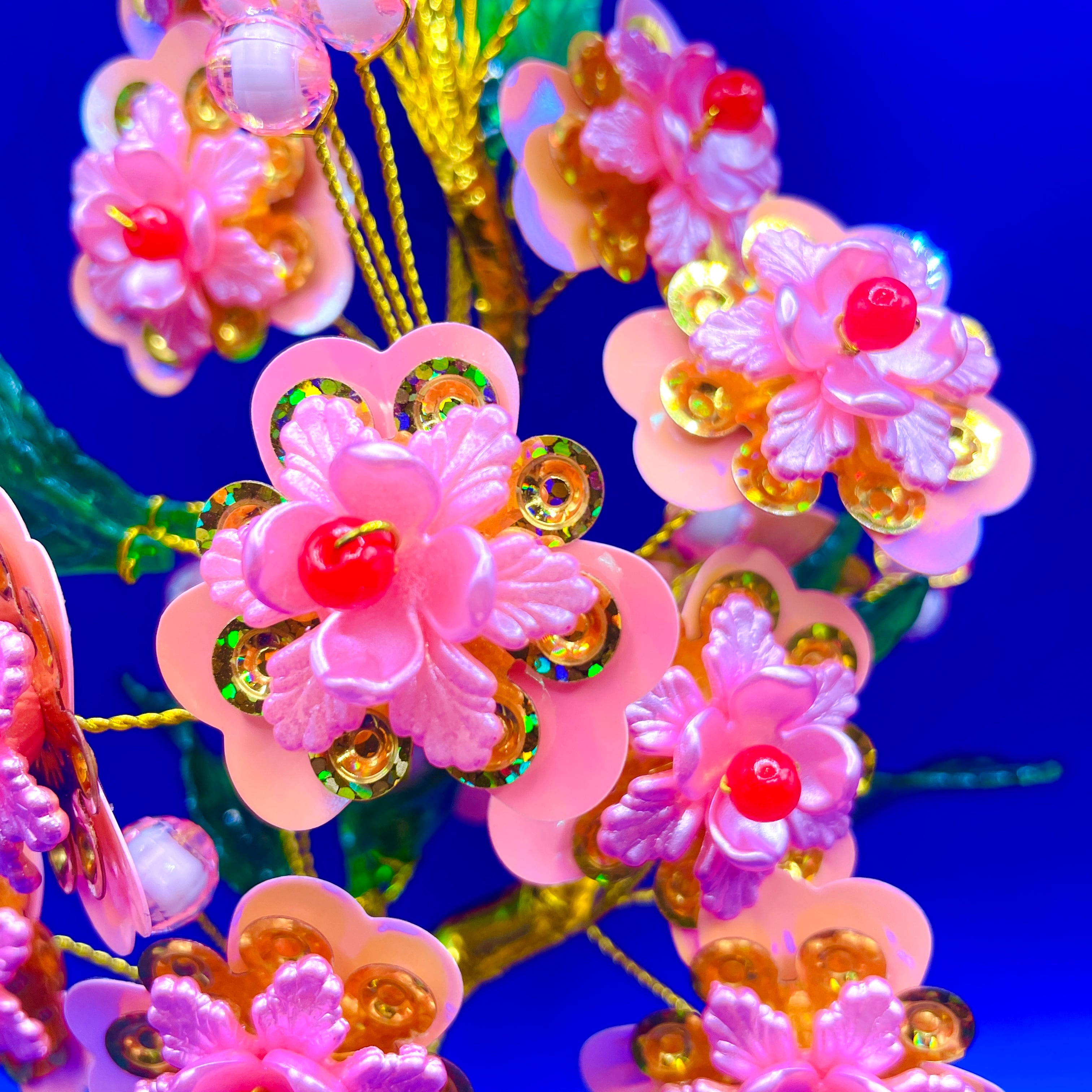 中国の縁起物、元寶(昔の金塊)の土台にキラキラしたお花と葉っぱが生えていて飾っているだけでテンションが上がること間違いなしのアイテムです!